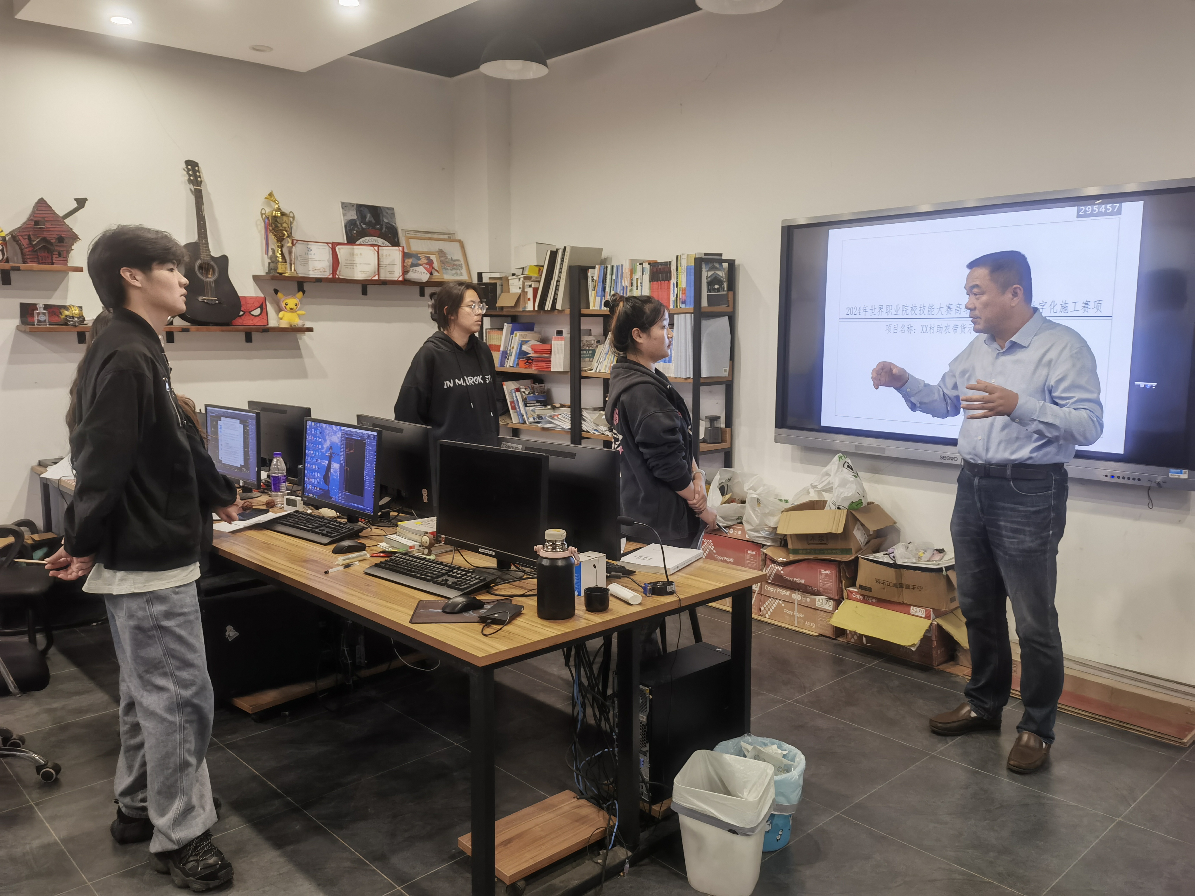 为做好2024年世界职业院校技能大赛备赛工作,进一步提升学生技能水平,10月15日下午,“范家茂技术技能型大师工作室”在建筑装饰工程设计工作室组织召开了建筑装饰数字化施工赛项备赛研讨会。校党委委员、副校长、工作室负责人范家茂出席会议,开云kaiyun体育党总支副书记(主持工作)丁怡琴、副书记施芳芳、专业教师沈子高、指导教师杨健及参赛学生参加会议。会议由副院长邓勋主持。