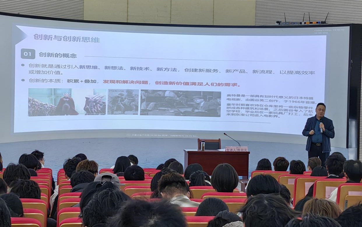 陈钦元以上映后不断刷新票房纪录的“哪吒2之魔童闹海”为切入点,对创新的概念、创新的类型、为什么要创新及如何创新等方面作了简要介绍,对创新大赛背景、赛道与组别、参赛条件、奖项设置、赛道评分规则等方面进行了分析,并详细解读了大赛备赛流程和重点,同时结合案例,分析了撰写商业计划书的底层逻辑,向与会人员分享了自己在往届大赛中的指导经验,给了现场师生很大的启发。