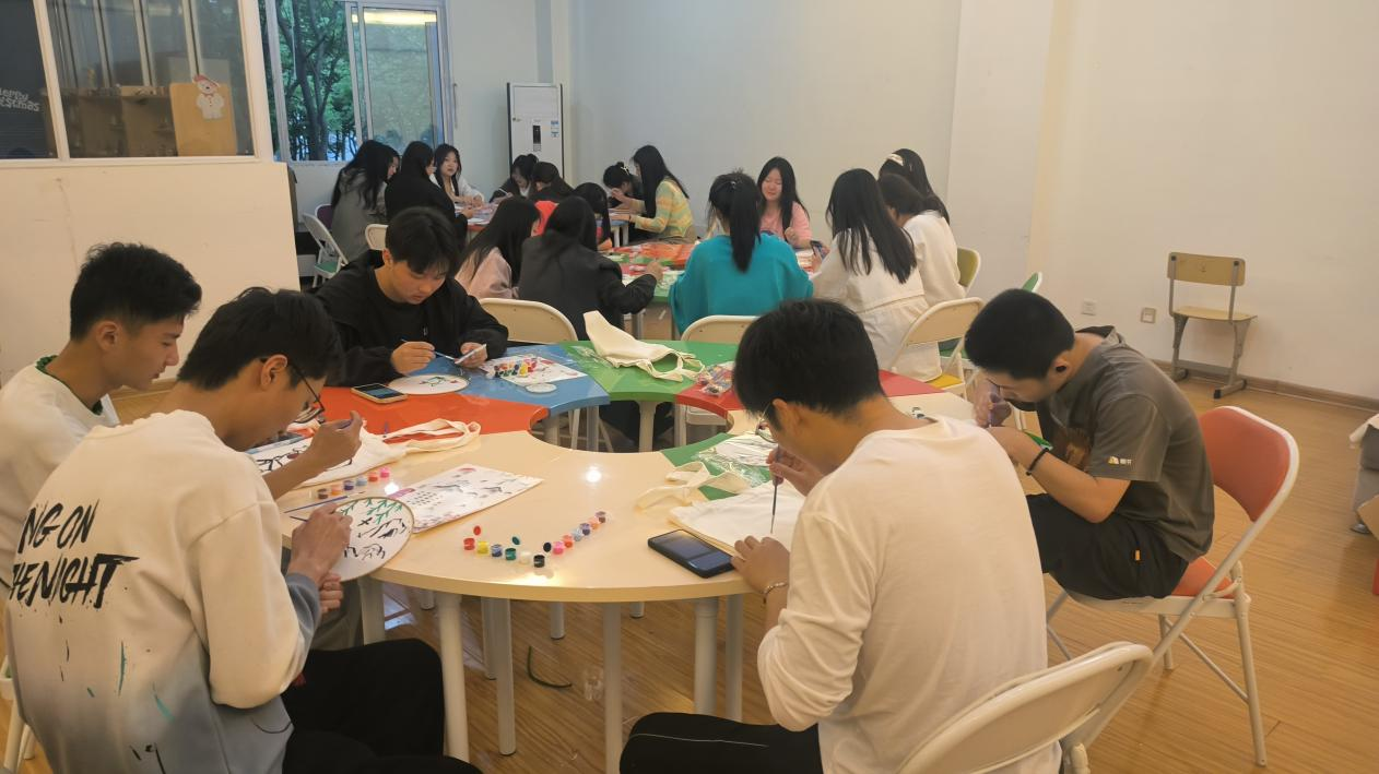 活动现场,同学们利用多彩的颜料,以手绘帆布包和团扇为载体,尽情地挥洒着自己的想象力和创造力。大家发挥想象力,用心构图,将自己的内心想法呈现在涂鸦作品中,五颜六色的花朵、惟妙惟肖的彩蝶、轻松谐趣的卡通形象,展现了青春的色彩和活力。同学们热情交流、相互协作,纷纷表示,很开心参加DIY手绘活动,在忙碌的学习之余能和小伙伴们一起沉下心来,绘制出自己的想法和创意,非常的开心和减压,更加体验到了生活的乐趣与美好。