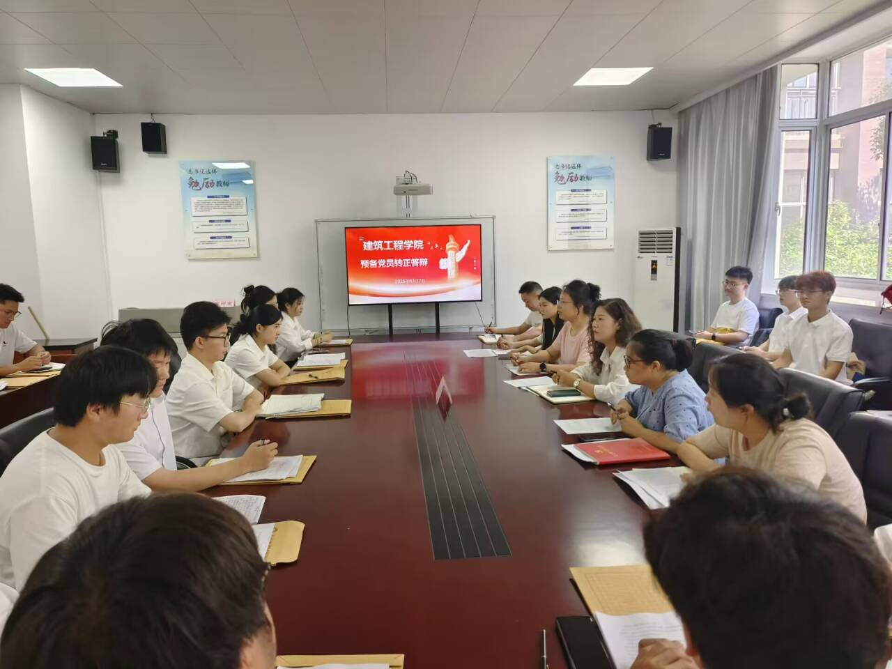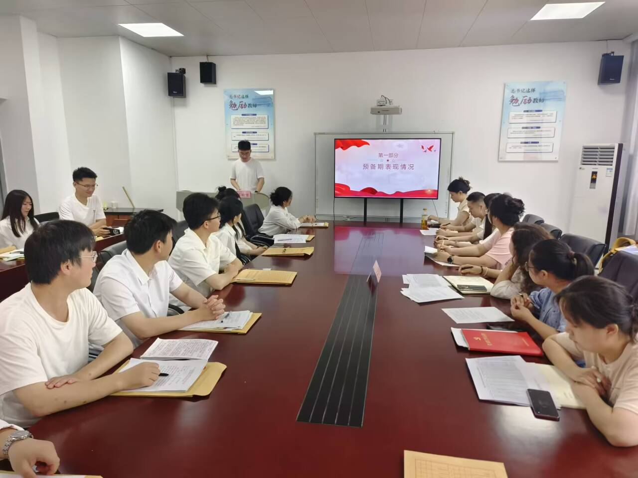 学院党总支副书记施芳芳和第四、第五党支部委员组成答辩考评小组,28名2022级拟转正学生预备党员接受转正答辩考核。本次答辩会由学院专职组织员金琼琼同志主持。