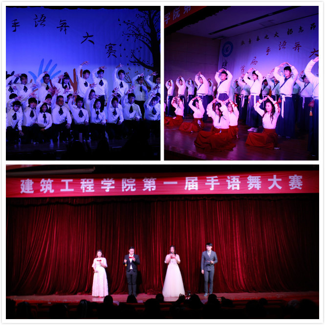 本次手语比赛以“激青春之火、扬志昂之帆”为主题。八个团队用精致的妆容、整齐的服装、轻柔的指尖、灵动的手语,伴着温馨的音乐,舞动出爱的奇迹。各个团队更是用完美的表现,默契的配合,动情的表演,感染了在场的每一位评委、老师和观众。最终,经过激烈的角逐,17建装班获得本次大赛一等奖;17工造1班、17工造2班以及17建工3、4班代表队获得二等奖;17工造3班、17工造4班、17环艺班以及17建工1、2班代表队获得三等奖。