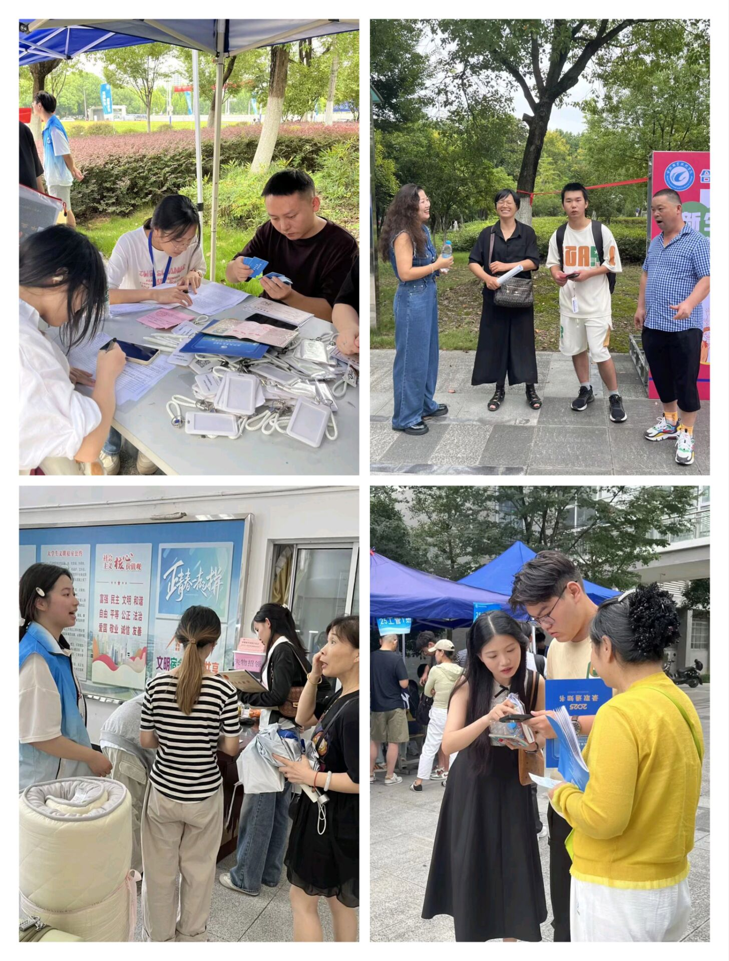 7点,迎新工作便已启动。身着蓝色马甲的志愿者们早早到位,在登记点为新生办理手续、核对信息、发放物资,在校园道路上为新生指引方向、搬运行李,用热情与耐心搭建起服务桥梁。“同学别急,慢慢核对信息”“行李我帮你扛,跟我往这边走”,志愿者们的贴心服务,让新生快速褪去初到的陌生感,感受到校园的温度。