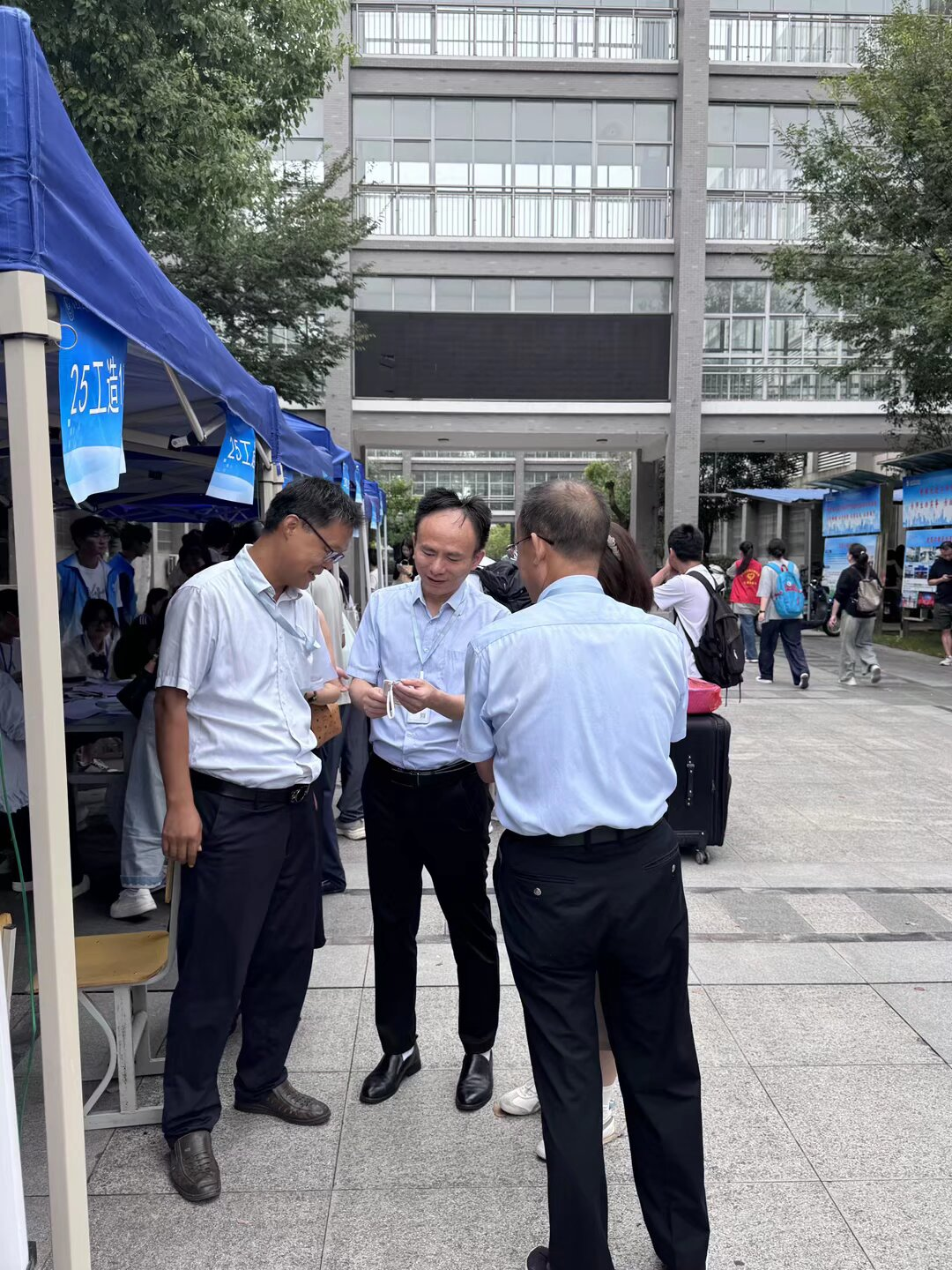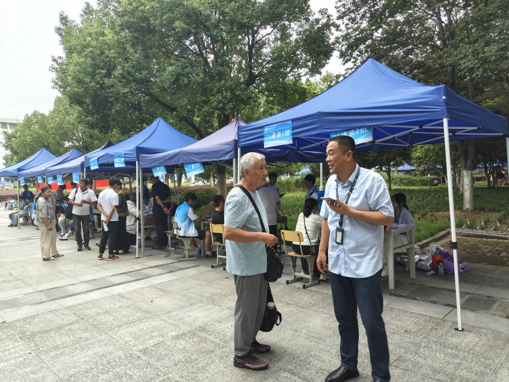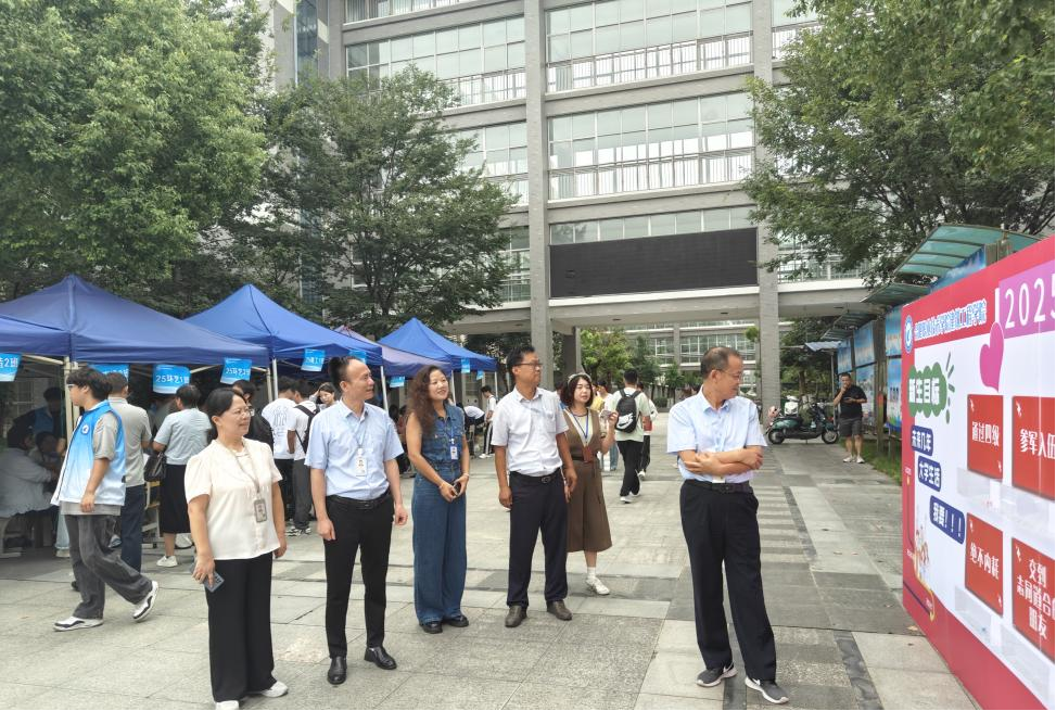 期间,校党委副书记、校长檀明,校党委委员、副校长范家茂等领导来到迎新现场,实地查看报到流程、物资保障、环境布置等情况,详细询问新生报到人数、志愿服务安排及家长需求等细节。在迎新登记处,校长檀明停下脚步,拿起新生反诈宣传卡套仔细查看,对该院迎新工作的细致贴心表示充分肯定。随后,领导们走到新生中间,与来自各地的新生及家长亲切交谈。“家是哪里的?来学校路上还顺利吗?”“对宿舍环境、专业学习有什么疑问,都可以跟我们说。”