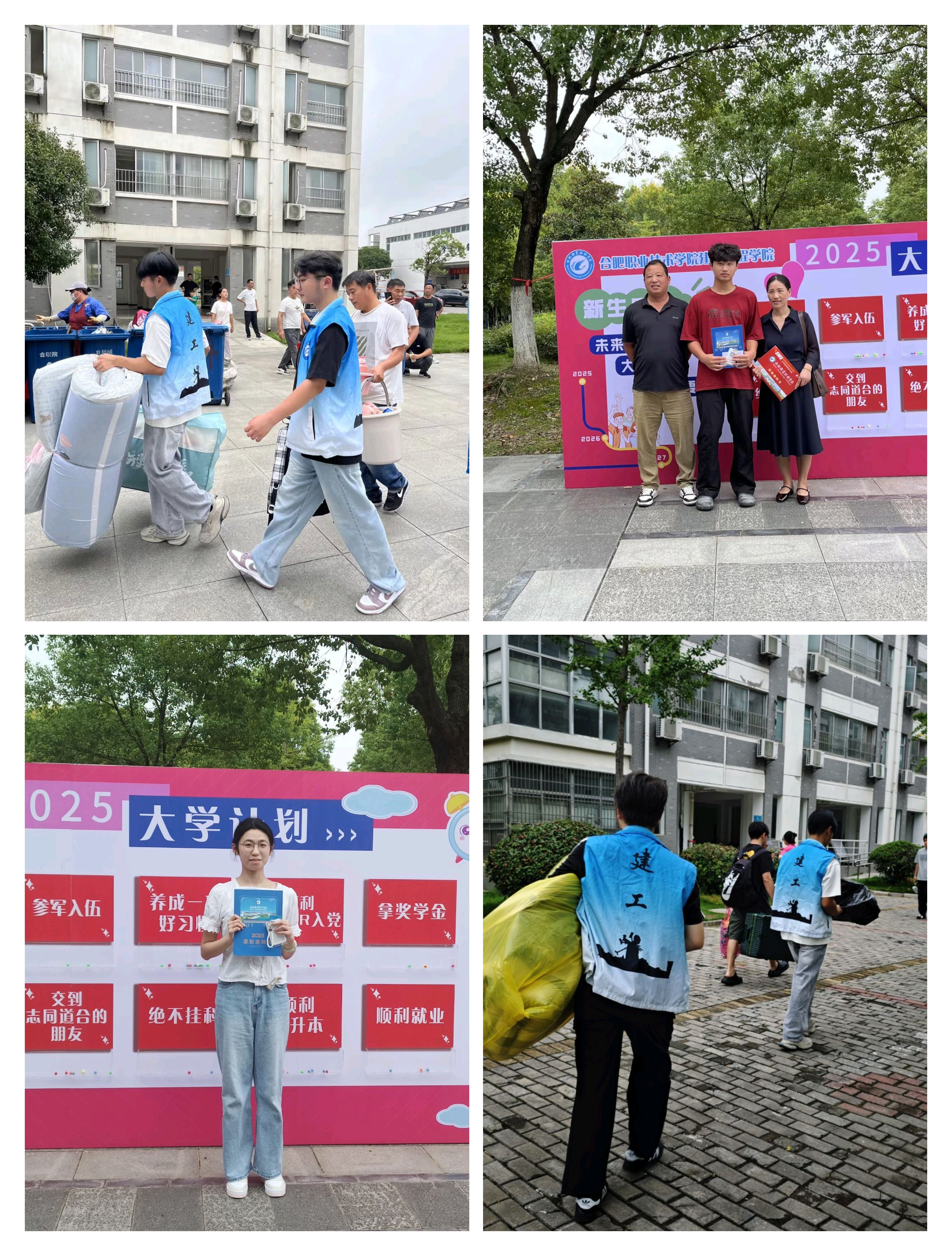 除了细致贴心的服务,我院在建工楼广场处打造的“2025级新生大学目标打卡板”更是成为当日的“热门打卡地”。这块精心设计的板块上,罗列了诸多贴合新生需求的大学目标——从“顺利通过英语四级” 的学习规划,到“获得奖学金”“养成一项好习惯”的成长期待,再到“毕业后顺利就业”“报名征兵报效国家”的长远追求,每一项目标都为新生勾勒出清晰的大学方向。