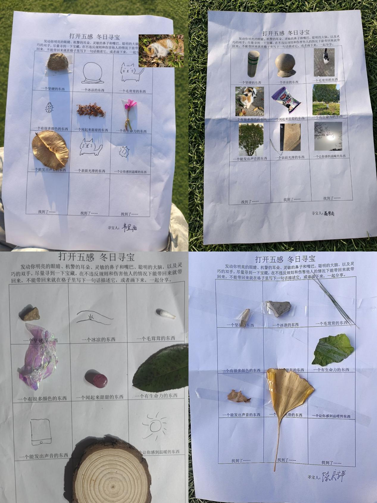 “打开五感冬日寻宝活动”于12月18日开展。学生走出室内,在校园中开启一场感官探索之旅。活动设置了听声辨位、嗅觉识别、触觉感知等趣味任务,引导学生调动视觉、听觉、嗅觉、触觉、味觉五种感官,细致观察冬日校园的草木景致与环境声响。同学们分组协作、相互配合,在完成任务的过程中不仅亲近了自然,更增强了团队凝聚力与感知幸福的能力。