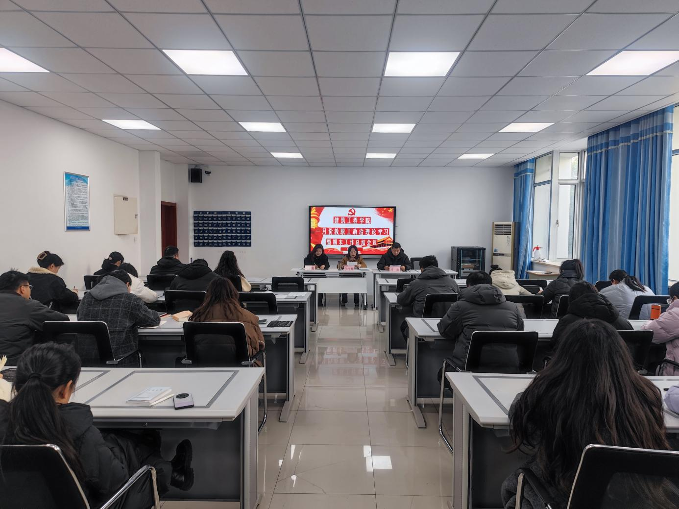 1月14日下午,开云kaiyun体育在建工楼304会议室召开一月份教职工政治理论学习暨期末工作总结会议,学院党政班子及全体教职工参加会议,会议由学院党总支副书记(主持工作)丁怡琴主持。