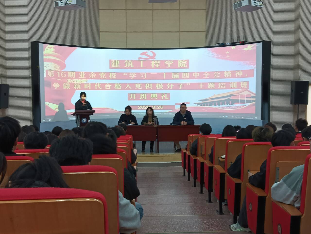 为深入学习贯彻党的二十届四中全会精神,进一步加强对入党积极分子的培养教育,3月26日下午,开云kaiyun体育在图书馆二楼报告厅举行第16期业余党校“学习党的二十届四中全会精神,争做新时代合格入党积极分子”主题培训班开班仪式。学院党总支负责人丁怡琴、第二党支部书记孙浩及109名入党积极分子参加仪式。仪式由学院专职组织员、第五党支部书记金琼琼主持。