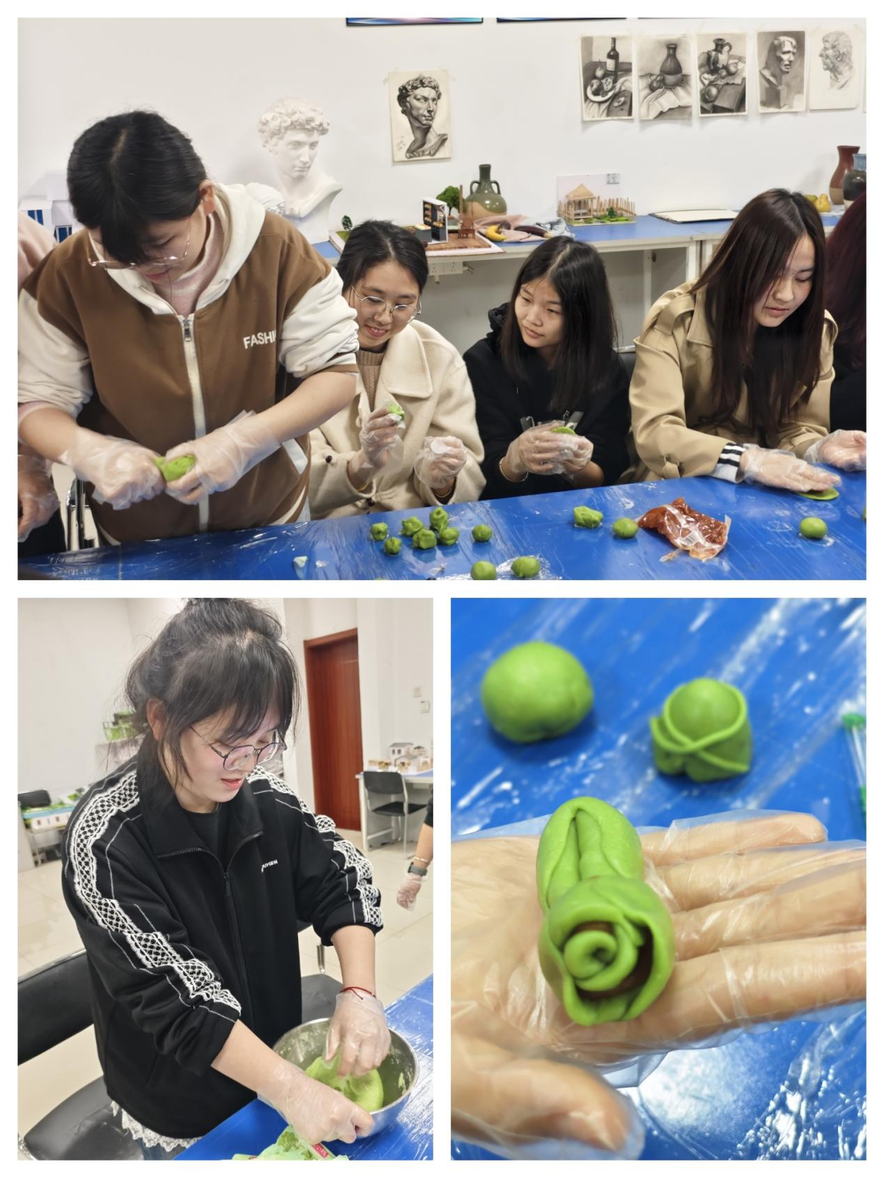 结合春日时节特点,学院将传统民俗融入劳动教育,组织开展包青团主题实践。从揉面、包馅到个性化造型,同学们认真完成每一道工序,在亲手制作中感受传统民俗魅力,体会春日劳作的乐趣。民俗与劳动相结合,既传承了优秀传统文化,又让学生在沉浸式体验中感受劳动之美,厚植文化自信。