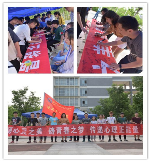 5月17日下午,学院在综合实验楼一楼广场组织开展横幅签名活动,红色主题横幅在人流中吸引了师生的目光,大家纷纷签名留言。