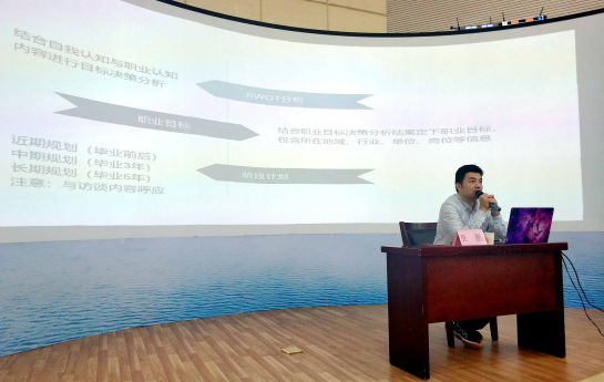 首先,张鹏老师从如何写好大学生职业生涯规划书的五个方面做出详细的讲解,并结合建筑类专业特色对学生进行就业前景的分析,让同学对个人职业规划有了更深层次的了解。