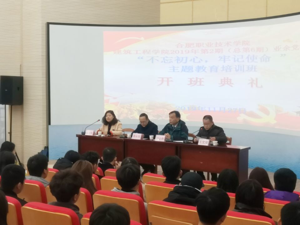 11月27日下午3点,我院第6期业余党校“不忘初心 牢记使命”主题培训班开班典礼在学校图书馆2楼报告厅举行。学院党总支班子成员、各入党介绍人及88名入党积极分子参加了本期培训班,典礼由施芳芳同志主持。