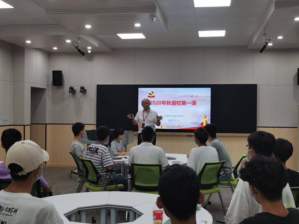 9月14日下午,校党委委员、副校长周晓隆教授在科技楼录播教室为我院2019级工管、建装、环艺专业学生讲授“返校第一课”,本次授课采用线上线下同步直播的形式进行。