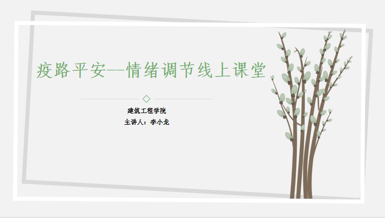 讲座主要围绕三点展开介绍。首先,在重大疫情下,人们处于应激状态,适度的情绪压力,如焦虑、恐慌等,可以帮助我们识别和远离危险,现在正经历的所有情绪,只要在可控的范围内,都是正常的,需要我们合理看待,积极调适,过度的负性情绪会有损我们的健康。其次,当我们出现情绪困扰时,需要调整认知,理性思考自己不良情绪的来源,改变自己的错误认知;合理宣泄情绪,用自己能接受的方式合理地表达不良情绪,比如可以采取倾诉、画画、写日记、听音乐等方式,还可以拨打心理热线;适度的运动可以让情绪恢复下来,慢跑、打球、散步等都是合适的选择。最后,建立积极的期待,坚信疫情终将过去,这将有助于我们克服当前的困难,获得内心的宁静和平和。