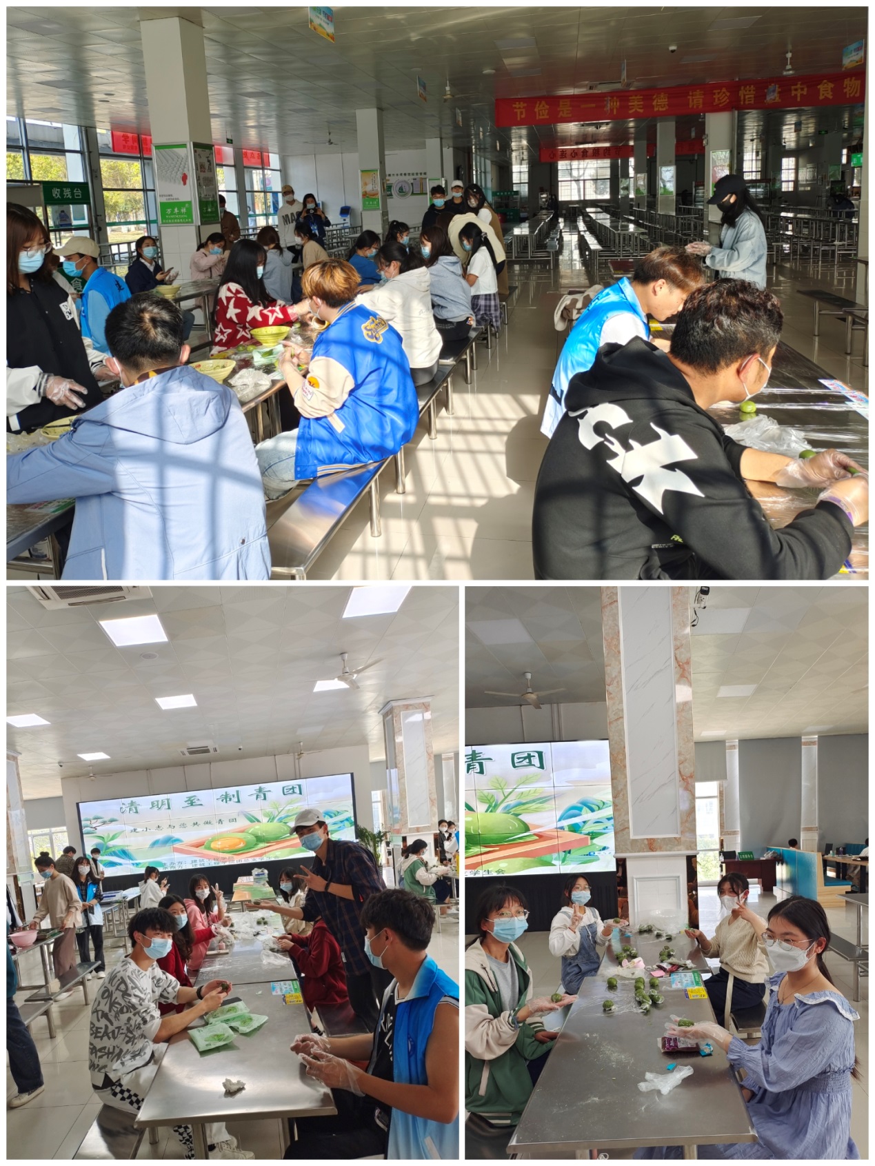 清明兼具自然与人文两大内涵,既是自然节气,也是传统节日。清明节将节气与民俗融为一体,是天时地利人和的合一。清明节有许多传统习俗,吃青团就是其中之一。为了丰富同学们的清明假期生活,品味民俗文化,4月5日下午3点,开云kaiyun体育分别在鼓山校区一、二食堂组织开展了清明节青团DIY活动。根据疫情防控工作要求,活动分为三组进行。同学们戴好口罩、手套,分工协作,你和面,我揉面,欢声笑语中开始自制青团。