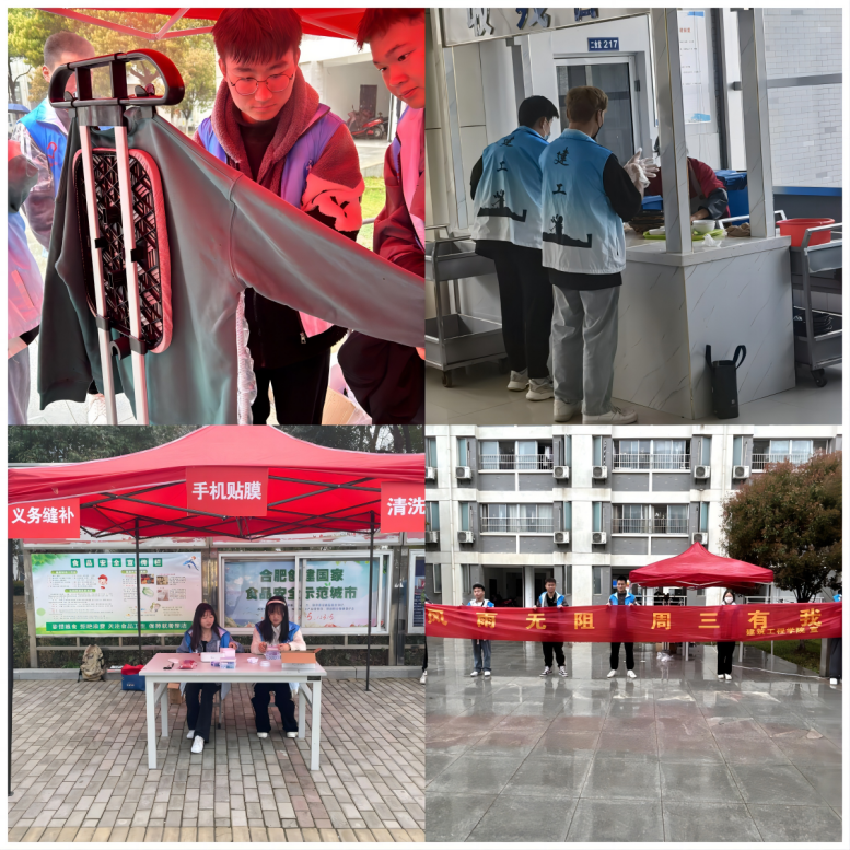 在日常校园生活中观察师生所需的服务,增加服务内容,现有服务内容为手机贴膜、衣物缝补、服务养老院老人、清洗眼镜和熨烫衣服,切实做到关注师生日常需求,从小事做起,为师生办实事。