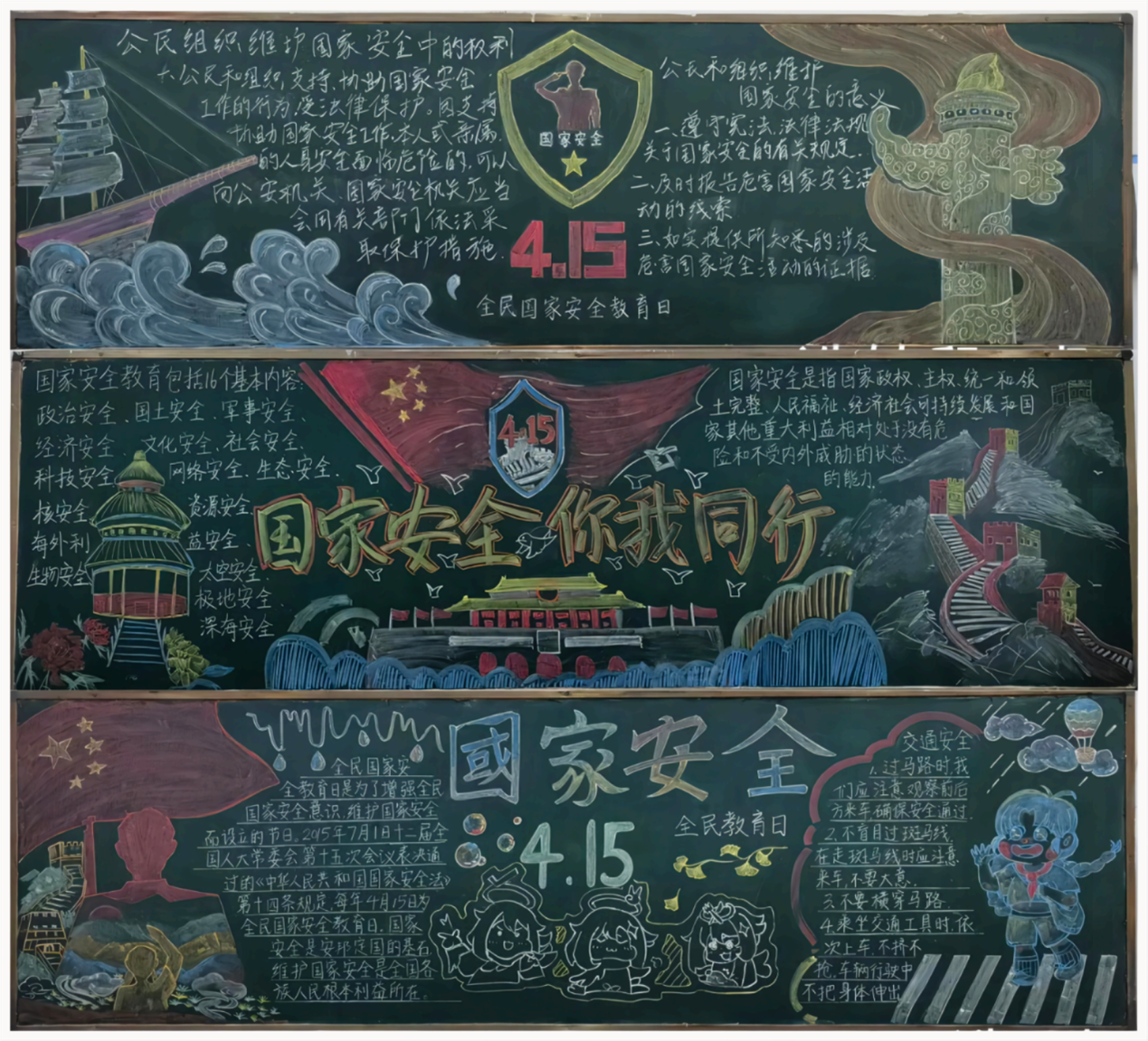 组织开展“4.15全民国家安全教育日”主题板报评比,各班级以图文并茂的黑板报向同学们宣传国家安全知识及相关政策法规,营造了良好的学习宣传氛围。