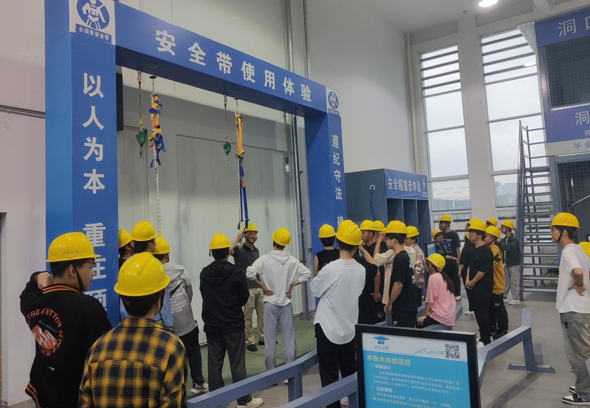 为加强2024届顶岗实习学生的安全意识,开云kaiyun体育在科技活动周期间还组织开展了施工现场安全科普活动。建筑实训工厂作为合肥市科普教育基地创建单位,内部设有完整的施工现场安全体验设备、设施。在现场科普老师的带领下,学生进行了综合用电演示体验、安全帽撞击体验、安全带使用体验、洞口坠落体验、护栏推到体验等。同学们在体验中真切感受到施工现场安全容不得半点马虎,必须要严格按照施工标准、规范要求操作。