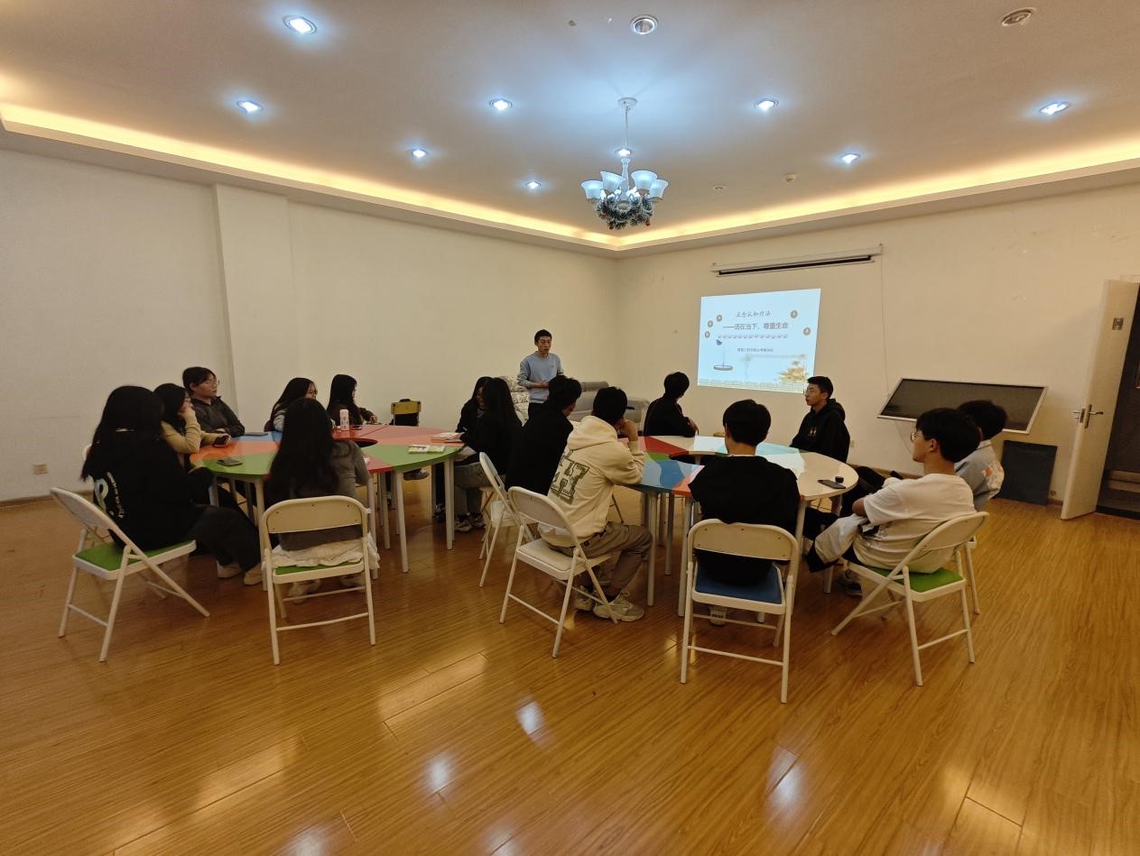 为让同学们能够正视心理问题,找到解决措施,不断优化个性心理品质,增强心理调适能力,提高心理健康水平。4月18日下午,开云kaiyun体育心理辅导站在大学生活动中心二楼心理活动室开展正念认知团体辅导活动,本次活动由心理老师李小龙主持,各班级心理委员参与。