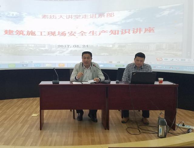 侯站长从安全意识、安全生产法律法规和安全知识三个方面,深入浅出地介绍了施工现场安全操作规范以及施工现场安全管理基本要求,通过典型的事故案例分析,使同学们对于建筑施工现场安全生产的重要性有了更加深刻的认识。