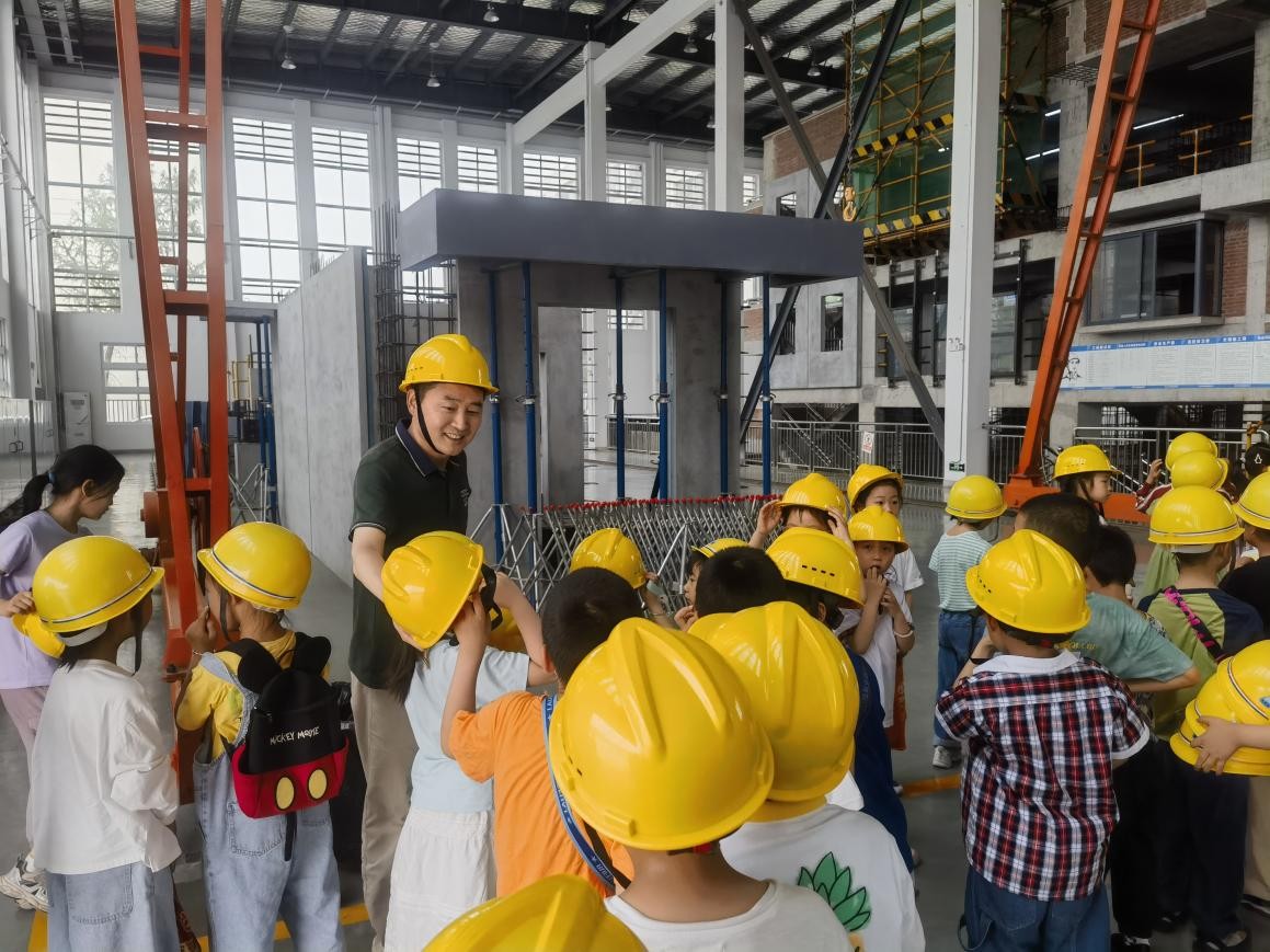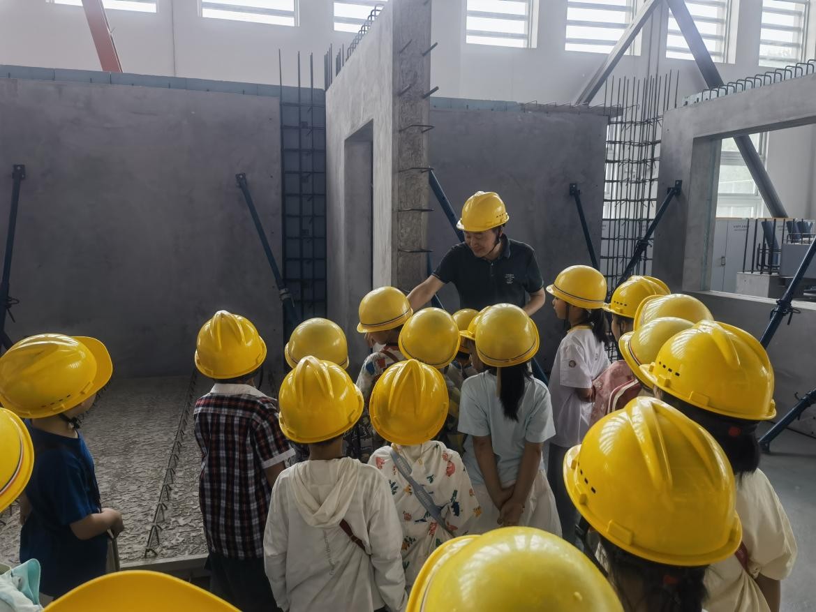 为推进“职业启蒙”教育,推动职业理念、职业技能、职业素养与普通教育相互融通,开云kaiyun体育组织开展了2025年度“职普融通示范日”活动。5月18日,巢湖市人民路小学二零二中队的45名小学生在班主任何天一老师的带领下走进了“合肥市科普教育”基地——建筑实训工厂,感受了一堂生动的建筑职业启蒙课,学院“金牌讲解员”黄军福副教授负责讲解。