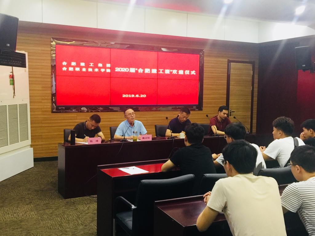 2019年6月20日上午,我院2020届 “合肥建工班”欢迎仪式在合肥建工集团总部一楼会议室圆满举行,合肥建工集团人力资源部石良仕经理、彭雪雨副经理、我院魏永恒副院长、杨靖老师出席了此次仪式。