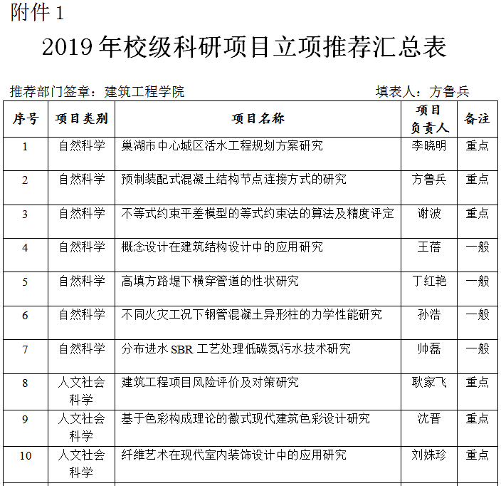 根据《开云kaiyun体育关于开展2019年度校级科研项目申报工作的通知》(合职院教〔2018〕40号)文件精神,我院组织各教研室积极申报,截至目前共收到申报书10项(见附件1),将于2018年9月13日14:00—16:00在开云kaiyun体育会议室208,拟对我院申报2019年度高校自然科学和人文社科研究项目组织专家(见附件2)评审。