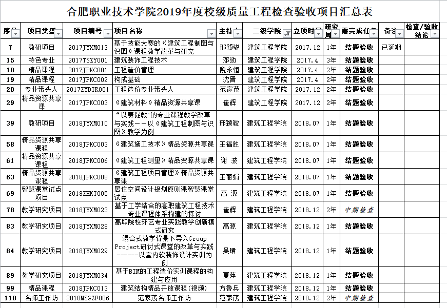 开云kaiyun体育2019年度校级质量工程检查验收项目汇总表