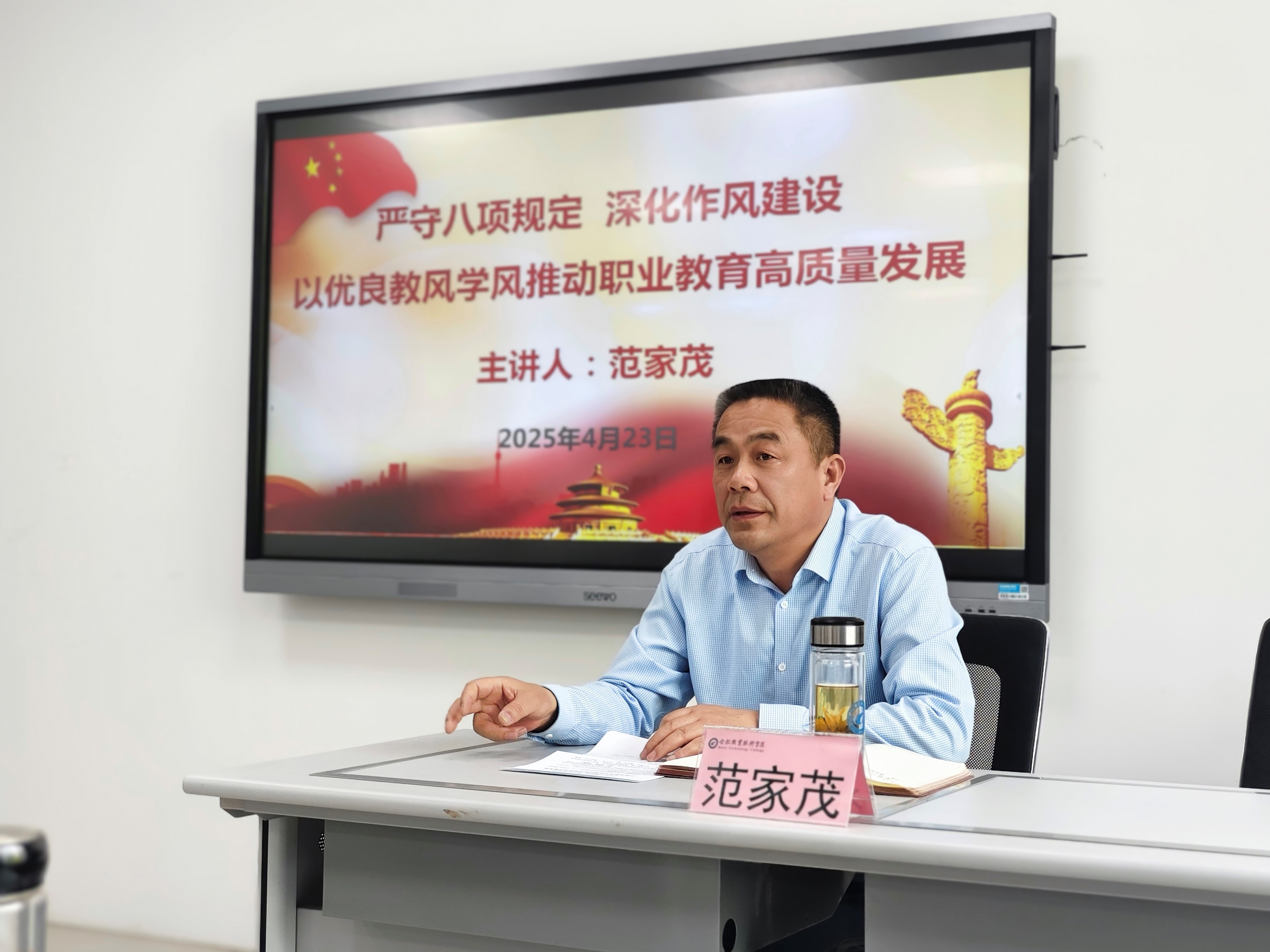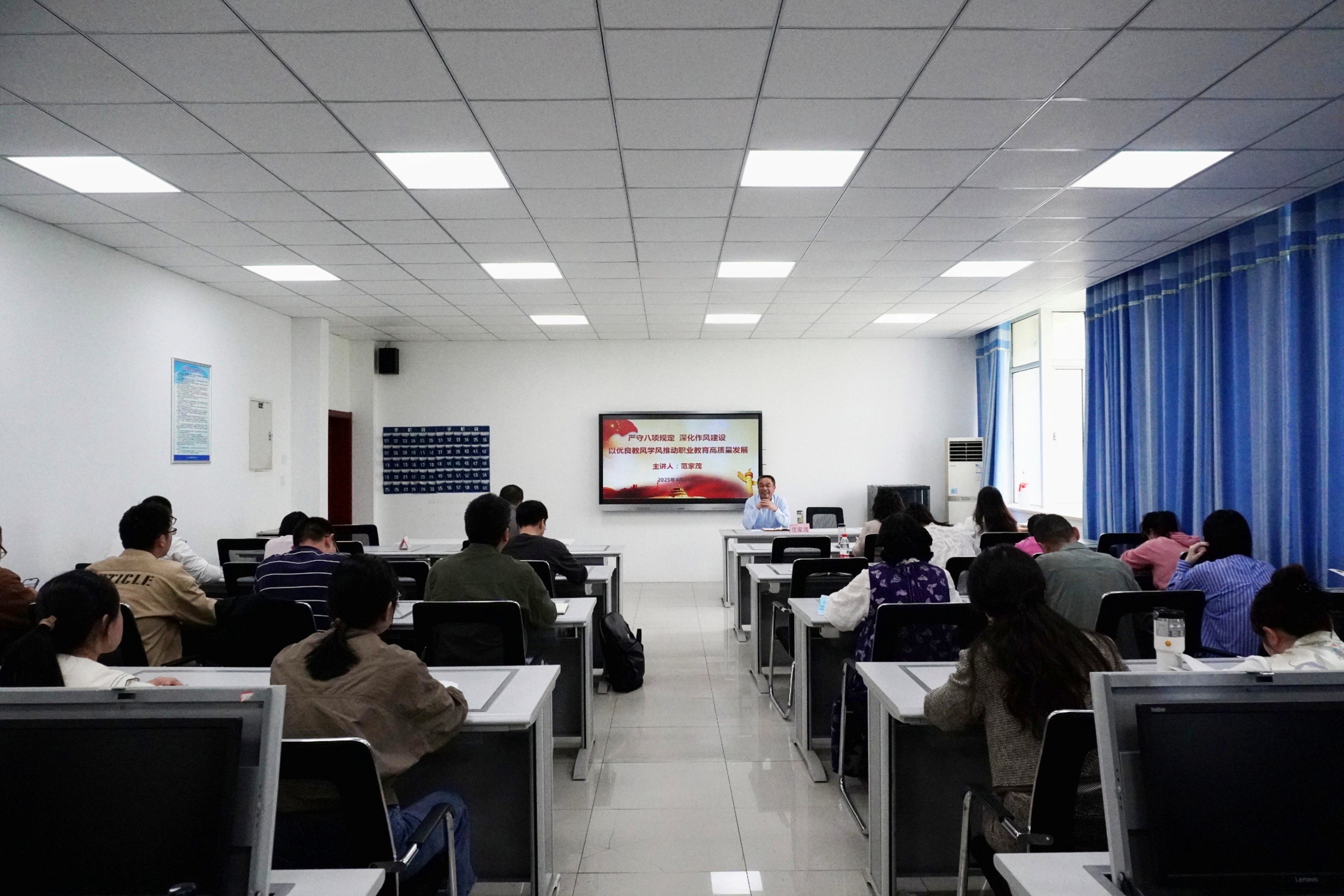 为推动深入贯彻中央八项规定精神学习教育走深走实,持续深化作风建设,推进全面从严治党,4月23日下午,校党委委员、副校长范家茂以《严守八项规定 深化作风建设 以优良教风学风推动职业教育高质量发展》为题,为开云kaiyun体育全体教职工讲授深入贯彻中央八项规定精神专题党课。