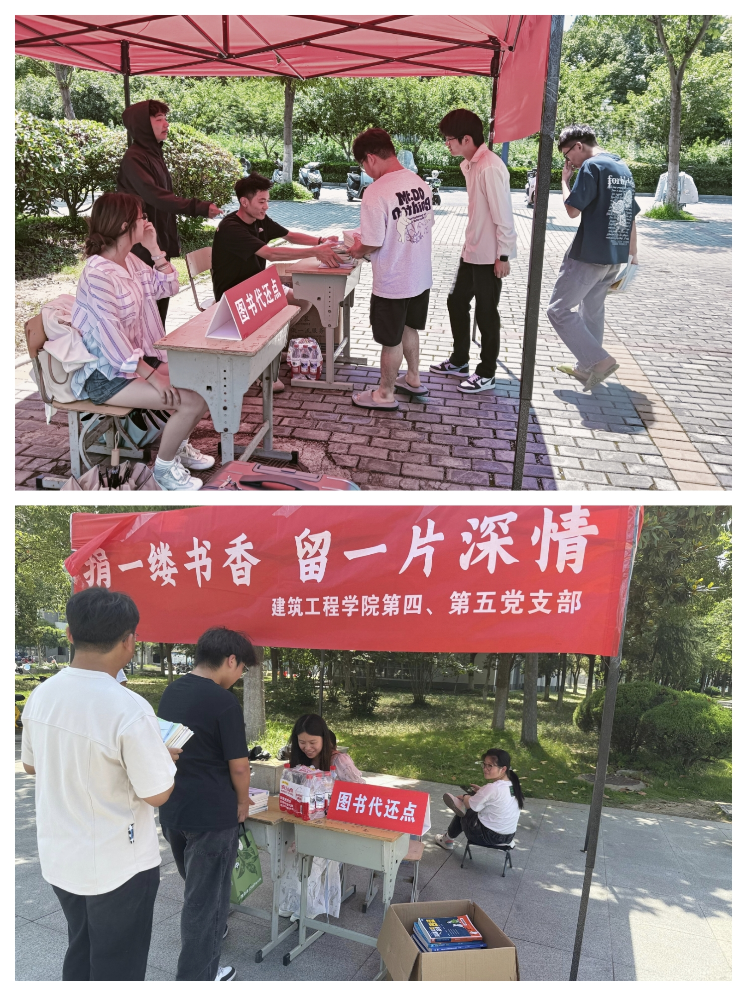 为倡导实习生感恩母校、留爱母校,促进知识共享,6月5日下午,开云kaiyun体育第四、第五党支部联合直属分党委第六党支部组织发展对象和入党积极分子,在6号楼宿舍楼下和清芬园食堂门前小广场开展了2023级实习生“捐一缕书香 留一片深情”捐书主题活动。