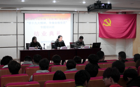 12月5日下午3:50在校图书馆1楼报告厅,举行了开云kaiyun体育第2期业余党校“学十九大精神争做合格党员”专题培训班结业典礼。学院有关负责人、教师党员代表及第2期业余党校学员参加了结业典礼,典礼由党总支副书记王文俊同志主持。