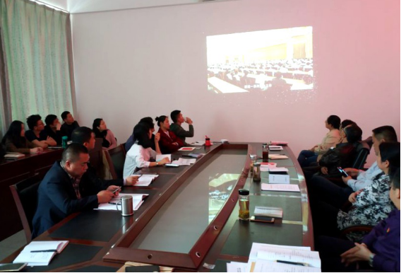会议议程共有三部分。首先由王文俊和施芳芳同志分别领学十三届全国人大一次会议精神和中国人民政治协商会议第十三届全国委员会第一次会议精神。通过学习,同志们进一步明确了下一步的奋斗目标和努力方向。正如习总书记在十三届全国人大一次会议闭幕会上指出,一切国家机关工作人员,无论身居多高的职位,都必须牢记我们的共和国是中华人民共和国,始终要把人民放在心中最高的位置,始终全心全意为人民服务,始终为人民利益和幸福而努力工作。