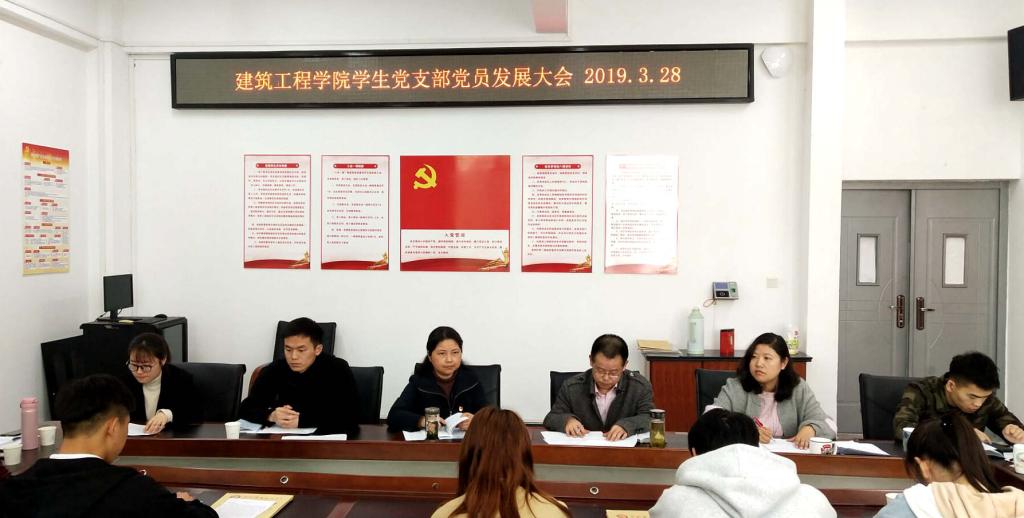 3月28日下午,我院学生党支部在综合实验楼208党员活动室召开党员大会,讨论通过余斌等9名同学按期转正和吸收刘宗原等25名同学为中共预备党员。会议由学生党支部书记施芳芳同志主持,学院党总支书记李红雨、副书记王文俊同志及支部党员以及培养联系人等出席了会议。