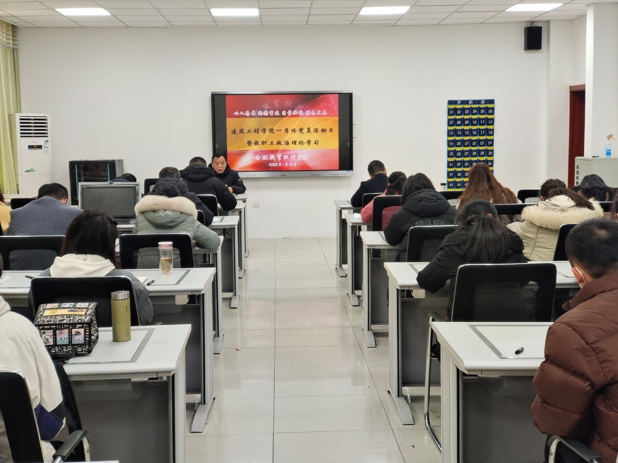首先,宁业群带领大家共同学习了《国家主席习近平二0二二年度新年贺词》,并结合十九届六中全会精神学习心得,勉励全体教职工在本职工作中要踔厉奋发、笃行不怠,奋力书写学校二次创业的建工新篇章。随后,魏永恒领学了《习近平主持中共中央政治局专题民主生活会发表的重要讲话》,施芳芳汇报了开云kaiyun体育党史学习教育总结。接下来,范家茂从三个方面总结了学院2021年度工作:一是时时守位,站稳方位,明确定位,立足岗位;二是事事求实,党建落实,发展抓实,基础夯实;三是处处见采,教师展风采,学生见精彩,学院添光彩。同时也指出了存在的问题和不足,并从党建引领、内涵建设、教学改革、学生成长四个方面对2022年重点工作谋划作了介绍。