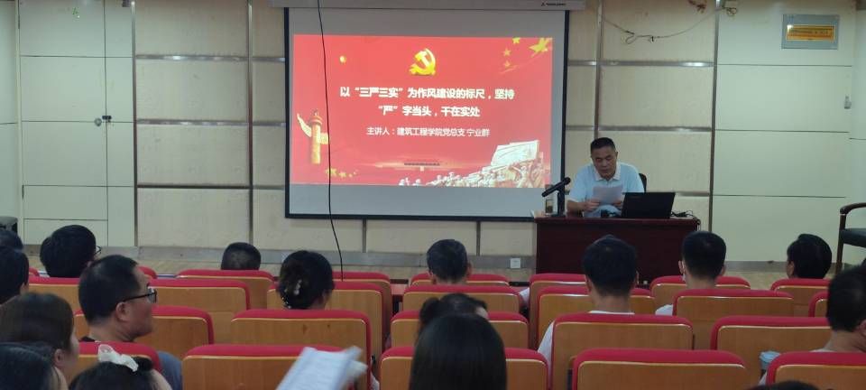 首先,宁业群根据本次学习的内容,结合当下的实际,从习近平总书记提出的“三严三实”的现实背景、“三严三实”的内涵和实质和践行“三严三实”健全作风建设长效机制等三个方面为全院党员干部上了《以“三严三实”为作风建设的标尺,坚持“严”字当头,干在实处 》主题党课。号召全院党员干部以“三严三实”为作风建设的标尺,坚持“严”字当头,干在实处,以良好的党风政风引领院风,凝心聚力对标职教本科找差距,深化改革积蓄正能量,为推进学院高质量发展奋勇争先。