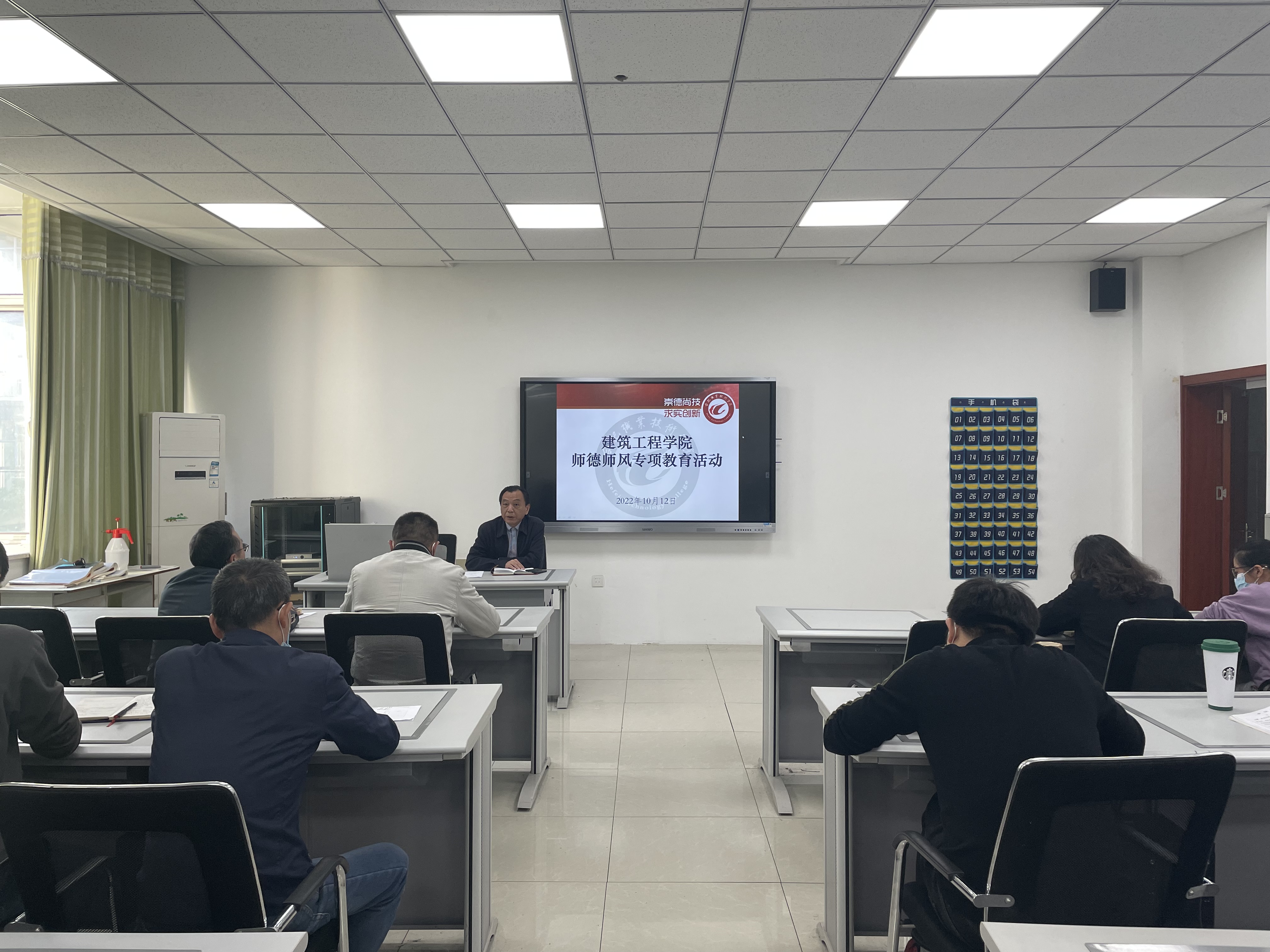 最后,宁业群作总结讲话。他强调,全体教师要严格执行学校和属地疫情防控有关工作规定,做到“非紧要不离市”,严格落实学生“晨午晚检”,扛起疫情防控的政治责任,筑牢疫情防控的坚实屏障。在随后的师德师风专项教育活动中,围绕“六个一”上的第一个“一”,宁业群带领全体教职工集中学习了习近平总书记关于师德师风的系列重要讲话精神以及安徽省教育工委、安徽省教育厅印发的《安徽省高等学校教师师德失范行为处理办法(试行)》的文件精神,并要求全体教师以习近平新时代中国特色社会主义思想武装头脑,模范带头践行社会主义核心价值观,自觉增强立德树人、教书育人的荣誉感和责任感,争做四有好老师,为学院和学校的高质量发展贡献力量。