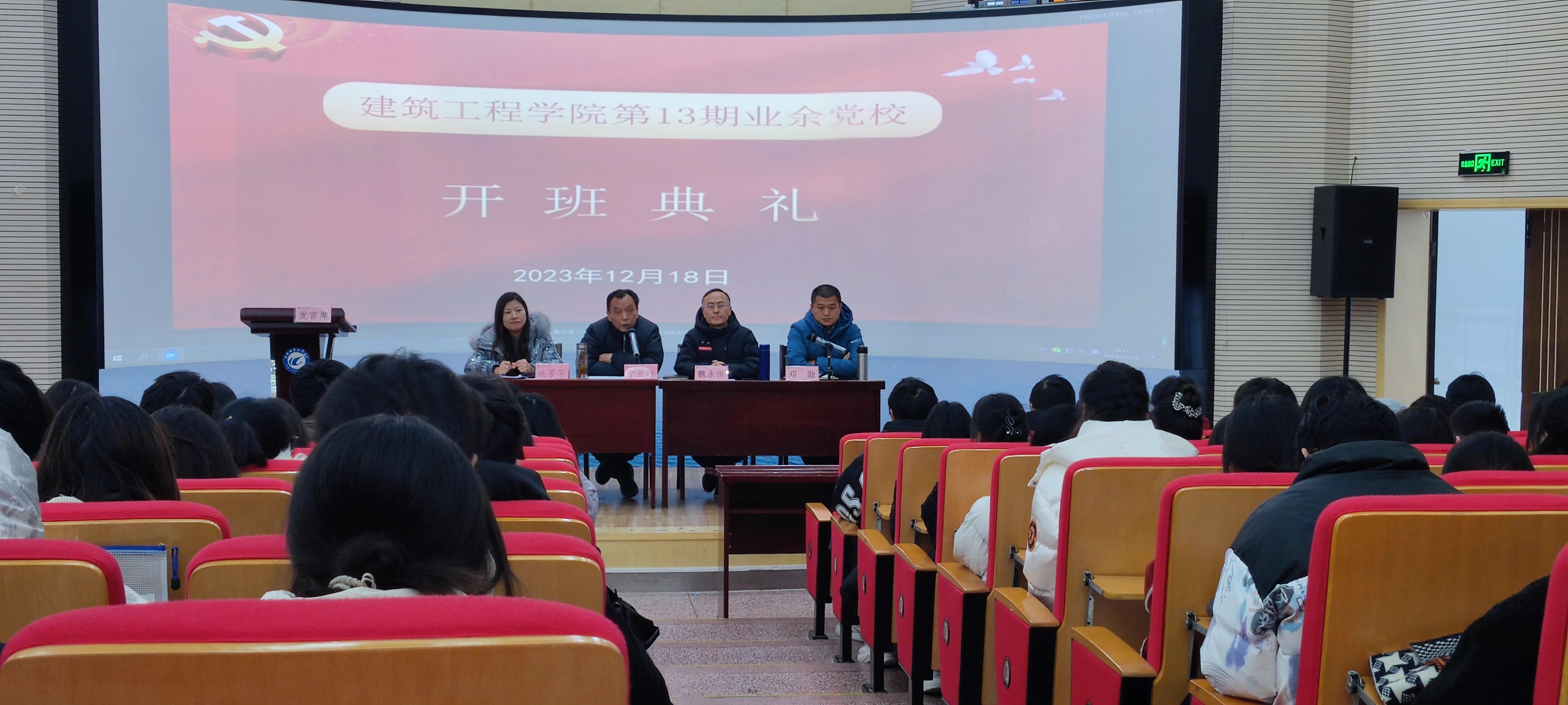典礼在庄严的国歌声中拉开帷幕。学院副院长(主持工作)魏永恒为本次开班典礼致辞。他介绍了我院业余党校开办的历史和办学成果,肯定了业余党校在学生政治思想教育和坚定理想信念方面所发挥的作用,希望广大学员们珍惜学习机会,端正学习态度,努力提高自身的思想道德修养;讲究学习方法,争取将所学知识转变为自身的思想认识和行为实践;时刻以党员标准要求自己,以实际行动向党组织靠拢,接受党组织的选拔和考验。