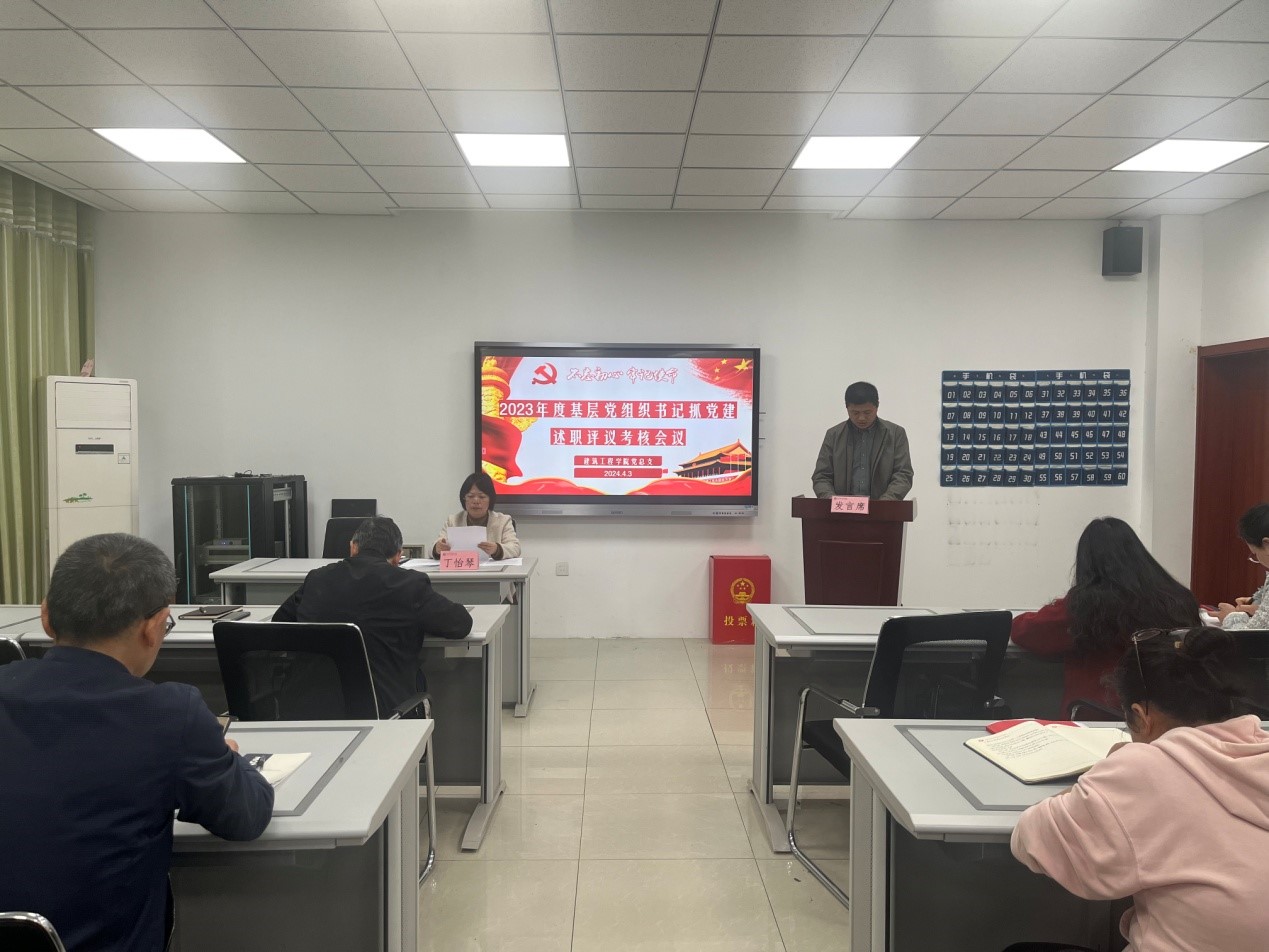 为压实基层党组织书记抓党建工作第一责任人职责,全面提升基层党建工作质量。4月3日下午,开云kaiyun体育在建工楼301召开2023年基层党组织书记抓党建工作述职评议会。会议由党总支副书记(主持工作)丁怡琴主持,全体党员参加会议。