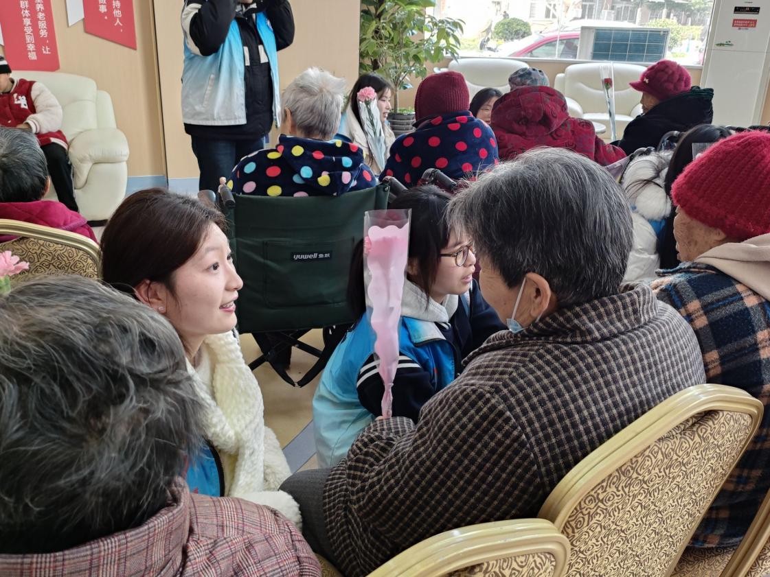 正值三八国际劳动妇女节,志愿者们向老人们送上鲜花,陪伴老人进行了套圈小游戏,志愿者们用真诚的微笑和耐心的陪伴,让老人们在这个特别的日子里感受到温暖快乐。