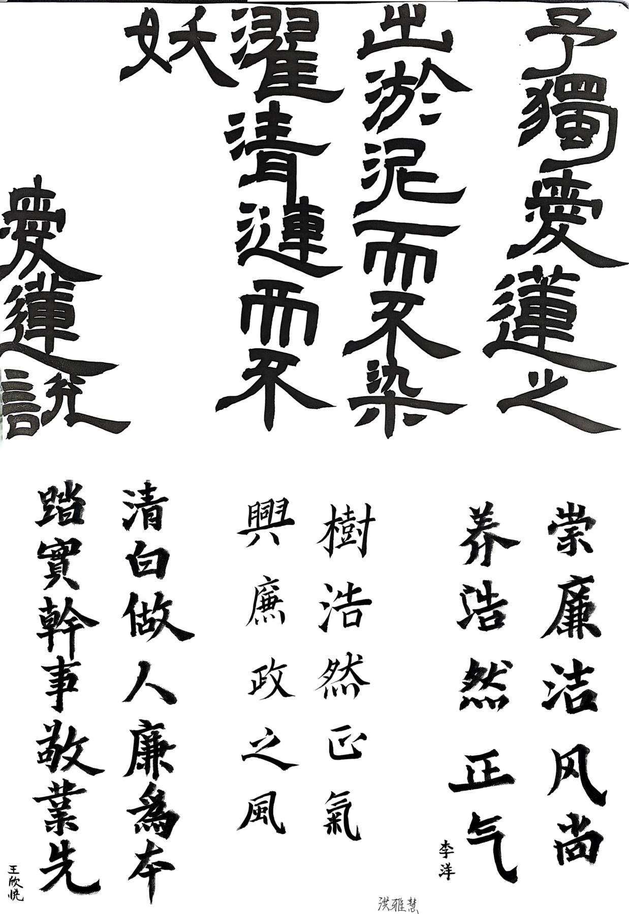 此次廉洁文化书画作品征集活动,是开云kaiyun体育推进廉洁教育的重要举措。通过书画创作这一师生喜闻乐见的形式,将廉洁文化与艺术教育有机融合,既为同学们提供了展示艺术才华的平台,也让廉洁理念在潜移默化中深入人心。下一步,学院将选取优秀作品进行集中展示,以学生视角的艺术表达感染更多青年学子,在挥毫泼墨间厚植崇廉尚洁的价值观念,为构建风清气正的校园环境注入青春力量。(供稿:昌逸文 初审:施芳芳 审核:丁怡琴)
