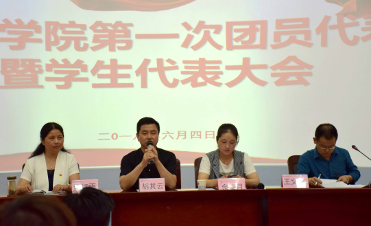 6月4日下午在图书馆二楼报告厅,我院召开共青团开云kaiyun体育第一次代表大会暨学生代表大会。此次大会旨在进一步学习贯彻习总书记新时代思想和十九大精神,将理论学习知识落实到指导团学工作实践中,认真总结上一届团学组织的各项工作,选举出新一届团学组织干部。校党委副书记胡其云、团委书记佘海月应邀出席,院党总支书记李红雨、教师代表和107名团学代表齐聚一堂,共同参加本次大会。会议由院党总支副书记王文俊主持。