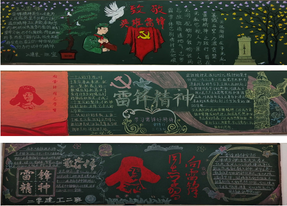 3月8日至12日,以20级各团支部为单位开展了“学雷锋”主题板报评比活动。一幅幅精心描绘的粉笔画,一篇篇信念坚定的学雷锋宣言,一个个感动人心的学雷锋故事,同学们用手中的粉笔表达着对雷锋精神的崇敬和学雷锋的志愿。经过认真评比,20建装1班荣获一等奖,20环艺和20工造转段1班荣获二等奖,20工造2班、20建工2班和20建工转段2班荣获三等奖。