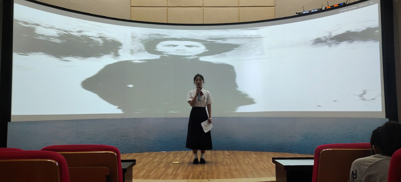 宣讲队的同学采用讲述与视频结合的方式,领着同学们再次回顾了革命英雄董存瑞、黄继光、刘胡兰、邱少云的英勇事迹。先烈们为了革命胜利,抛头颅洒热血、不惧牺牲的大无畏精神再一次深深的感动了在场的同学们。