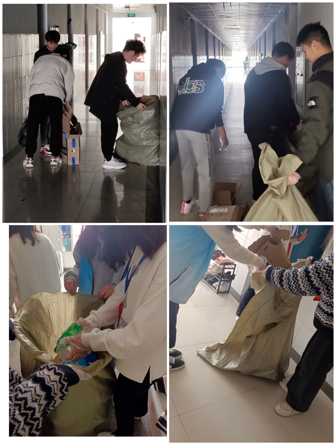 第二组深入宿舍,回收废纸盒、饮料瓶,创绿色环保校园。