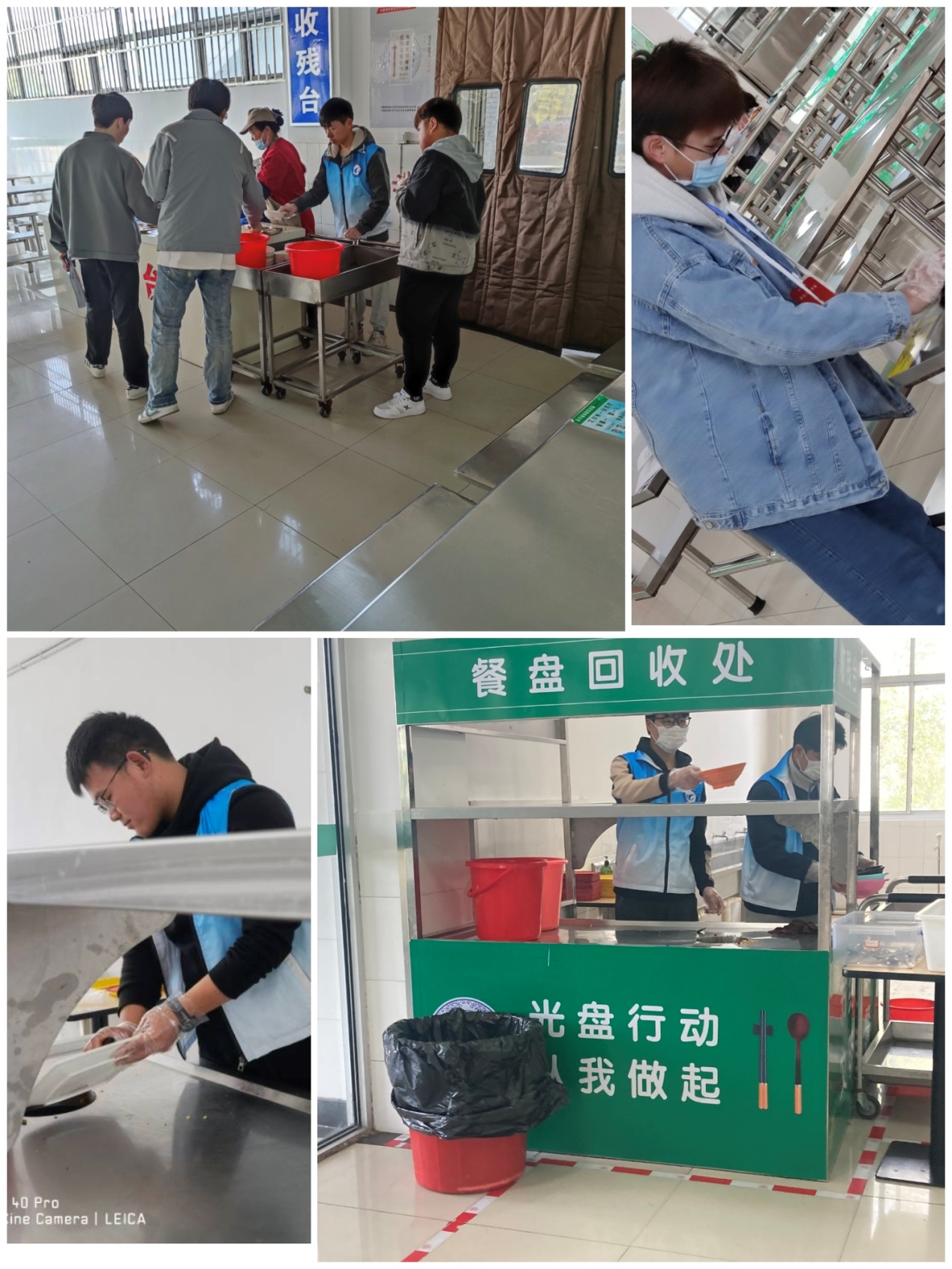 第三组来到食堂,协助工作人员清理餐盘、收拾餐桌,助力光盘行动,创节约校园。