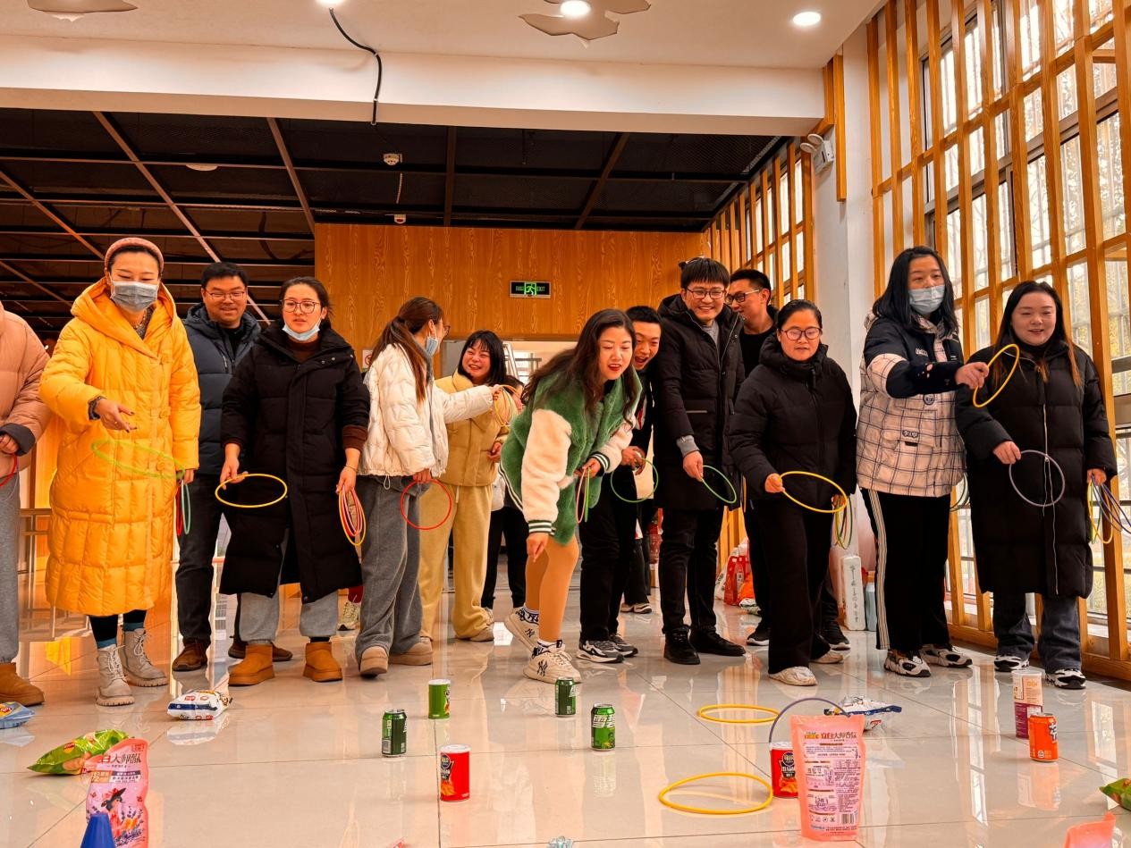 齐心协力比赛更是趣味十足。前面的队员抱住后面队员的腿,喊着口号齐心协力地向前行进。各小组你追我赶,竞争激烈。乒乓球接力则既考验奔跑速度,也考验手部的稳定度。大家小心翼翼的用筷子夹起乒乓球快速传递给下一棒队员,稍有不慎,乒乓球落地就得重来,现场气氛又紧张又热烈。套圈游戏现场,更是火爆异常,大家瞄准奖品,大展身手,满载而归。