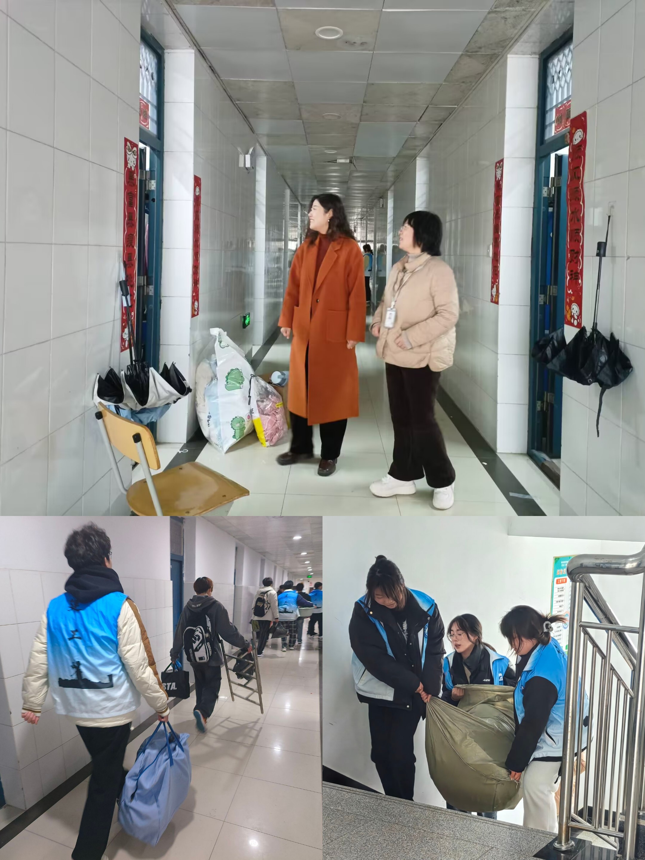 下午两点半,学生志愿者队伍准时到岗,学院领导班子成员和相关辅导员老师在宿舍搬迁期间一直坚守现场,穿梭、忙碌于2号楼、6号楼和8号楼之间,根据现场情况不断完善搬迁细节,提出中肯意见,使得工作高效有序开展,看望并询问同学们宿舍搬迁的问题与困难,及时予以解决,让搬迁的同学们感受到了学院的温暖与关怀。在大家的共同努力下,共计47间宿舍搬迁工作圆满完成。